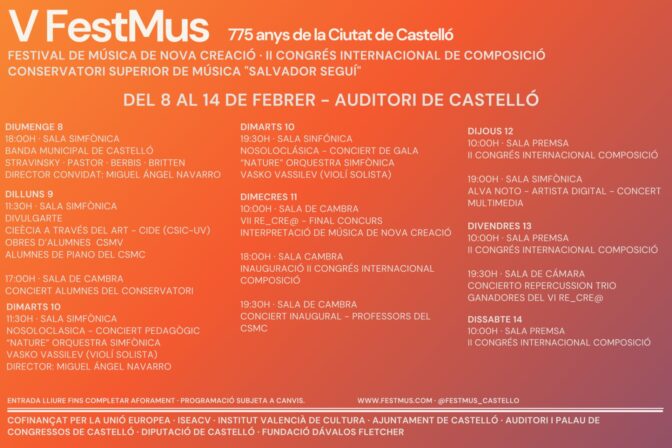 El Auditori programa el VI FESTMUS del 8 al 14 de febrero de 2026, como bloque propio dentro del calendario de febrero, integrado en la agenda oficial del recinto.